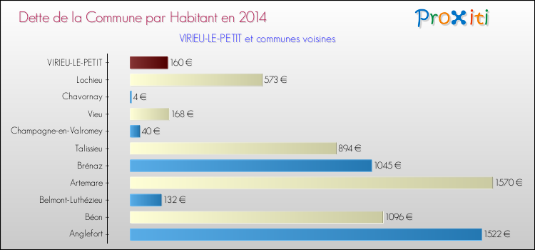 Par rapport aux 312 habitants de Virieu-le-Petit, en 2014 le poids de cette dette représente 160 € par habitant.