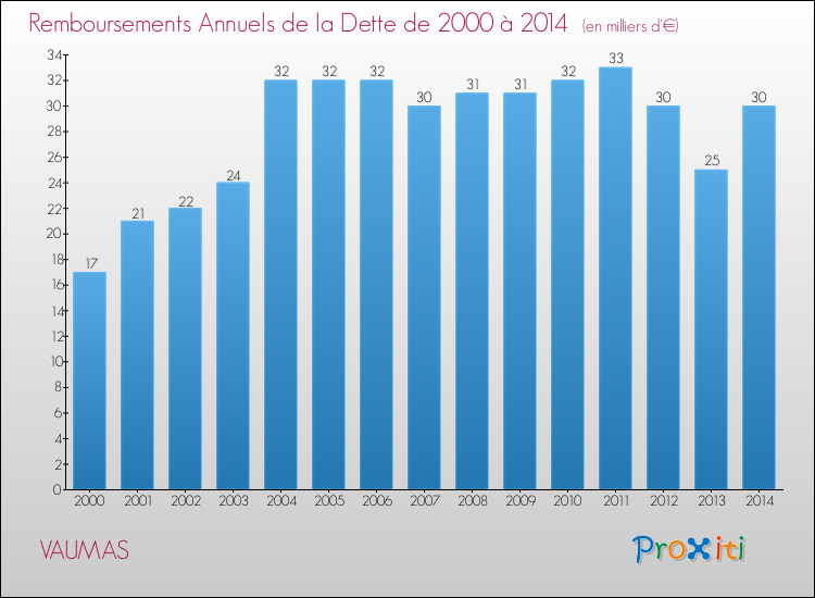 A Vaumas, la dette par habitant a donc augmenté de 21.35 % entre 2000 et 2014.