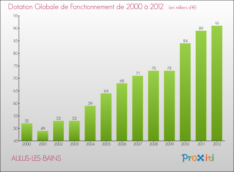 En effet, la dotation globale de fonctionnement versée par l'état en 2012 à la seule commune de Aulus-les-Bains était de : 91 000 € au total.