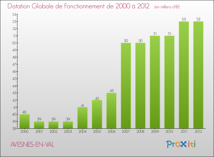 En effet, la dotation globale de fonctionnement versée par l'état en 2012 à la seule commune de Avesnes-en-Val était de : 53 000 € au total.