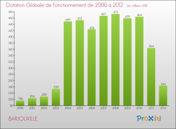 En effet, la dotation globale de fonctionnement versée par l'état en 2012 à la seule commune de Barjouville était de : 244 000 € au total.