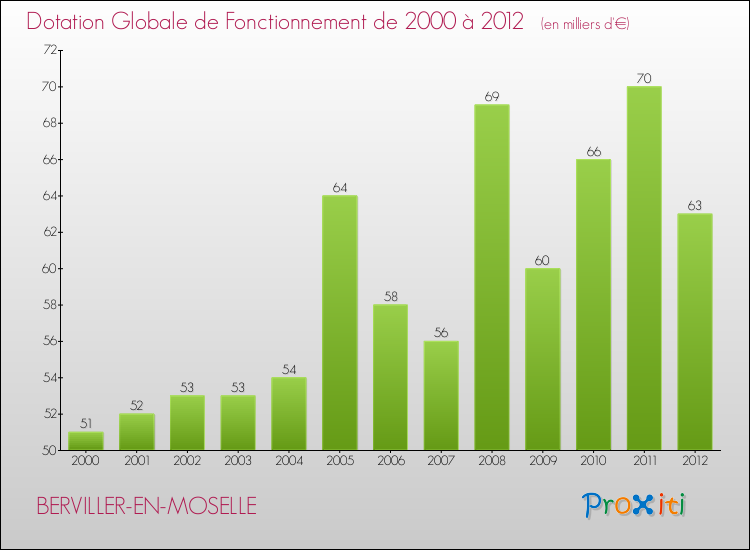En effet, la dotation globale de fonctionnement versée par l'état en 2012 à la seule commune de Berviller-en-Moselle était de : 63 000 € au total.