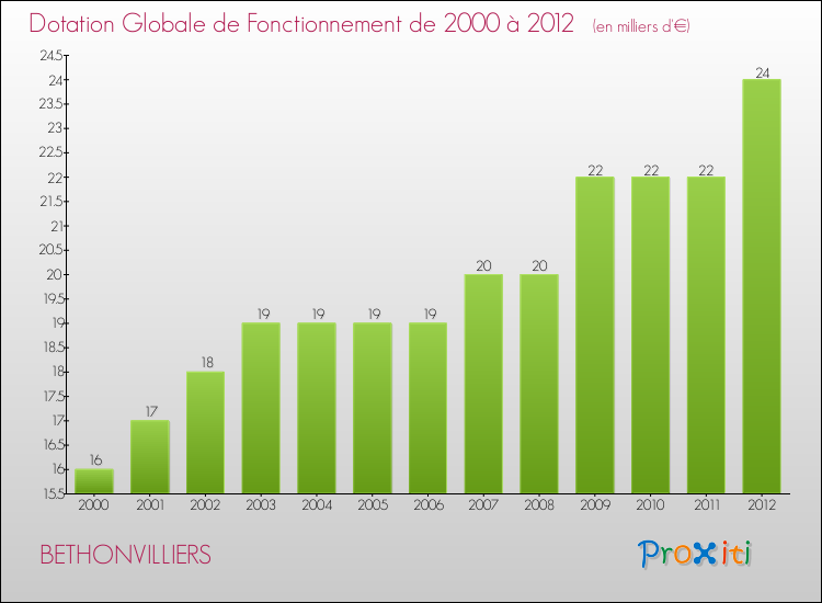 Dans le même temps, la Dotation Globale de Fonctionnement accordée aux communes françaises similaires à Bethonvilliers était de 228 € par habitant, en 2012.