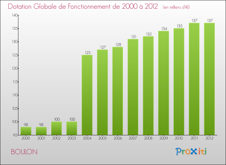 En effet, la dotation globale de fonctionnement versée par l'état en 2012 à la seule commune de Boulon était de : 137 000 € au total.