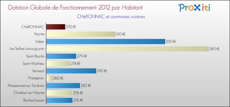 Le graphique ci dessous indique la Dotation Globale de Fonctionnement accordée par habitant à Chéronnac en 2012 par rapport aux communes voisines.