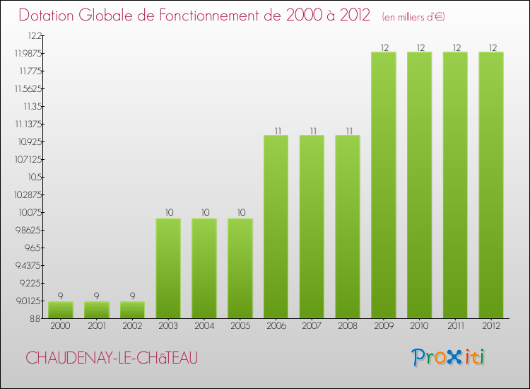 En effet, la dotation globale de fonctionnement versée par l'état en 2012 à la seule commune de Chaudenay-le-Château était de : 12 000 € au total.