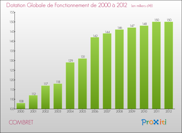 Evolution du montant de la Dotation Globale de Fonctionnement pour COMBRET de 2000 à 2012