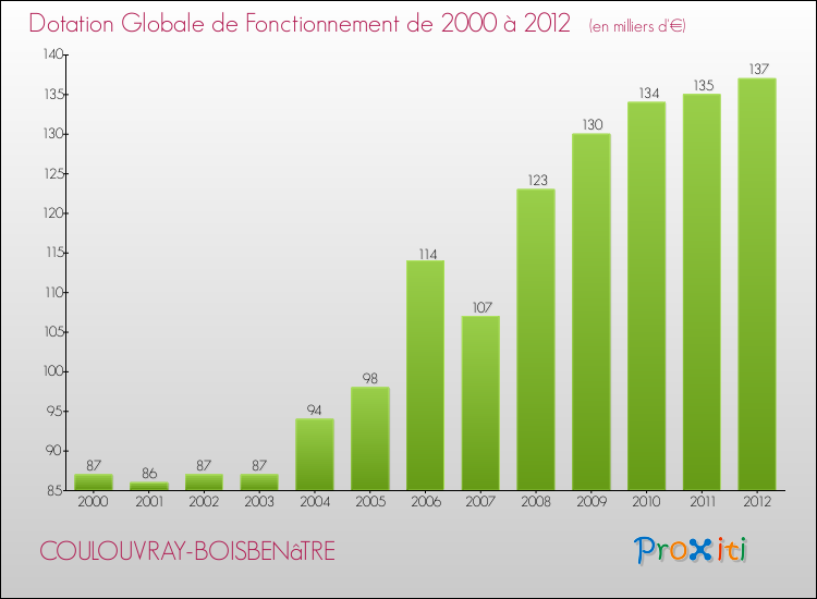 En effet, la dotation globale de fonctionnement versée par l'état en 2012 à la seule commune de Coulouvray-Boisbenâtre était de : 137 000 € au total.