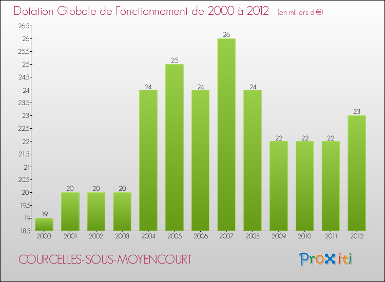 En effet, la dotation globale de fonctionnement versée par l'état en 2012 à la seule commune de Courcelles-sous-Moyencourt était de : 23 000 € au total.