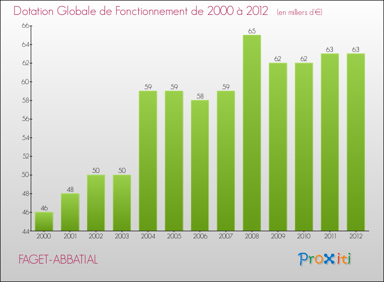 En effet, la dotation globale de fonctionnement versée par l'état en 2012 à la seule commune de Faget-Abbatial était de : 63 000 € au total.