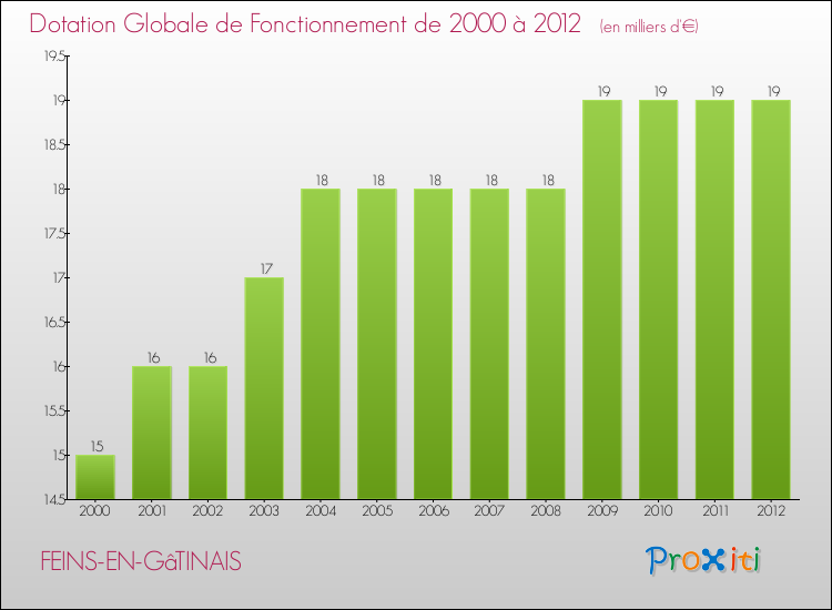En effet, la dotation globale de fonctionnement versée par l'état en 2012 à la seule commune de Feins-en-Gâtinais était de : 19 000 € au total.