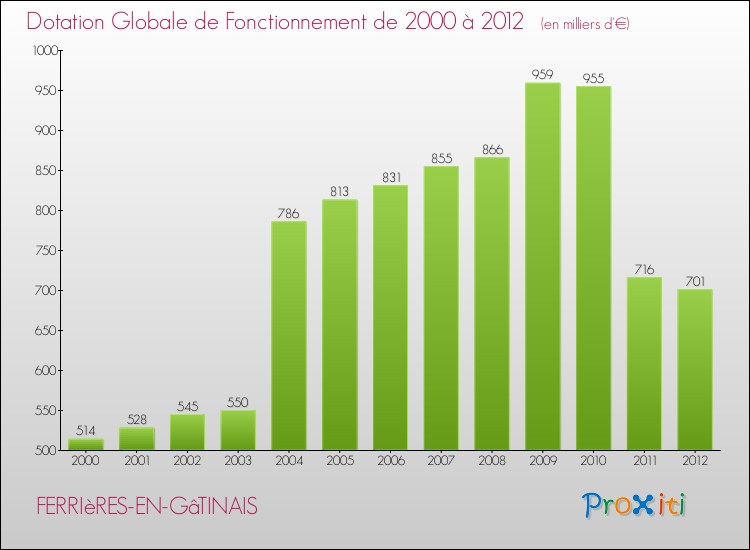 En effet, la dotation globale de fonctionnement versée par l'état en 2012 à la seule commune de Ferrières-en-Gâtinais était de : 701 000 € au total.