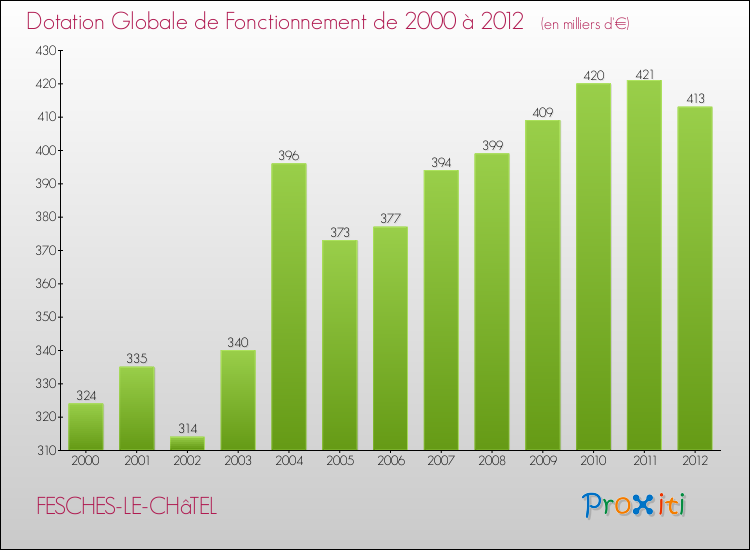 En effet, la dotation globale de fonctionnement versée par l'état en 2012 à la seule commune de Fesches-le-Châtel était de : 413 000 € au total.