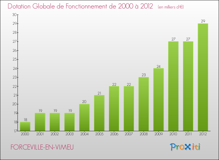 En effet, la dotation globale de fonctionnement versée par l'état en 2012 à la seule commune de Forceville-en-Vimeu était de : 29 000 € au total.