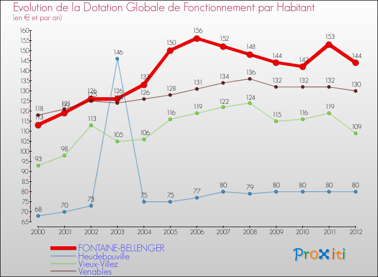 Rapporté aux 1 058 habitants de Fontaine-Bellenger en 2012, cela représente 144 € par habitant.