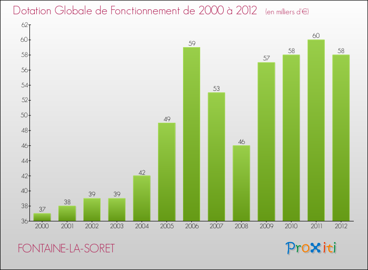 En effet, la dotation globale de fonctionnement versée par l'état en 2012 à la seule commune de Fontaine-la-Soret était de : 58 000 € au total.