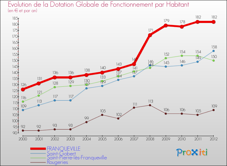Rapporté aux 133 habitants de Franqueville en 2012, cela représente 182 € par habitant.