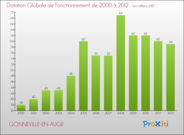 En effet, la dotation globale de fonctionnement versée par l'état en 2012 à la seule commune de Gonneville-en-Auge était de : 59 000 € au total.