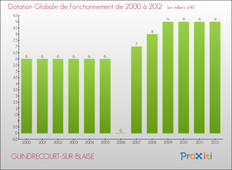 En effet, la dotation globale de fonctionnement versée par l'état en 2012 à la seule commune de Guindrecourt-sur-Blaise était de : 9 000 € au total.