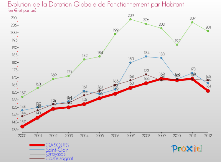 Rapporté aux 434 habitants de Gasques en 2012, cela représente 161 € par habitant.