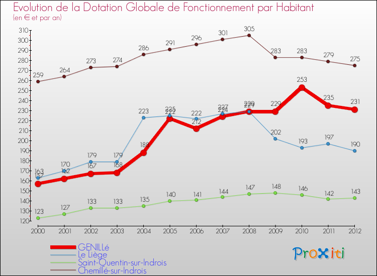 Rapporté aux 1 598 habitants de Genillé en 2012, cela représente 231 € par habitant.