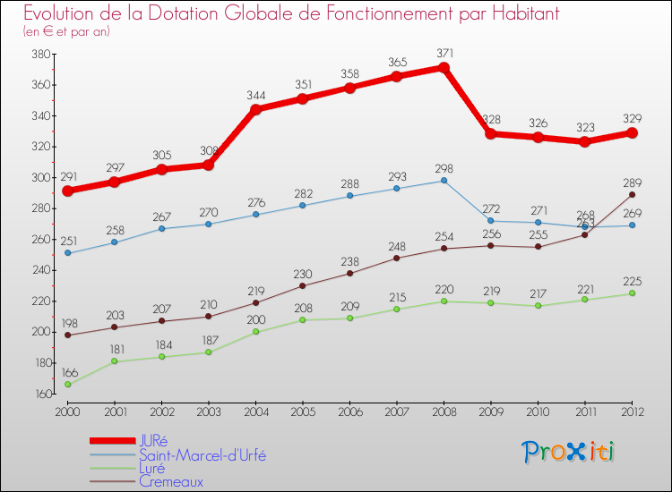 Rapporté aux 253 habitants de Juré en 2012, cela représente 329 € par habitant.