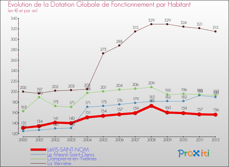 En effet, la dotation globale de fonctionnement versée par l'état en 2012 à la seule commune de Lévis-Saint-Nom était de : 275 000 € au total.