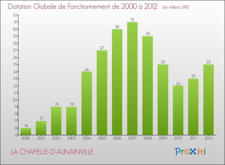 En effet, la dotation globale de fonctionnement versée par l'état en 2012 à la seule commune de La Chapelle-d'Aunainville était de : 25 000 € au total.