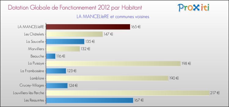 Le graphique ci dessous indique la Dotation Globale de Fonctionnement accordée par habitant à La Mancelière en 2012 par rapport aux communes voisines.