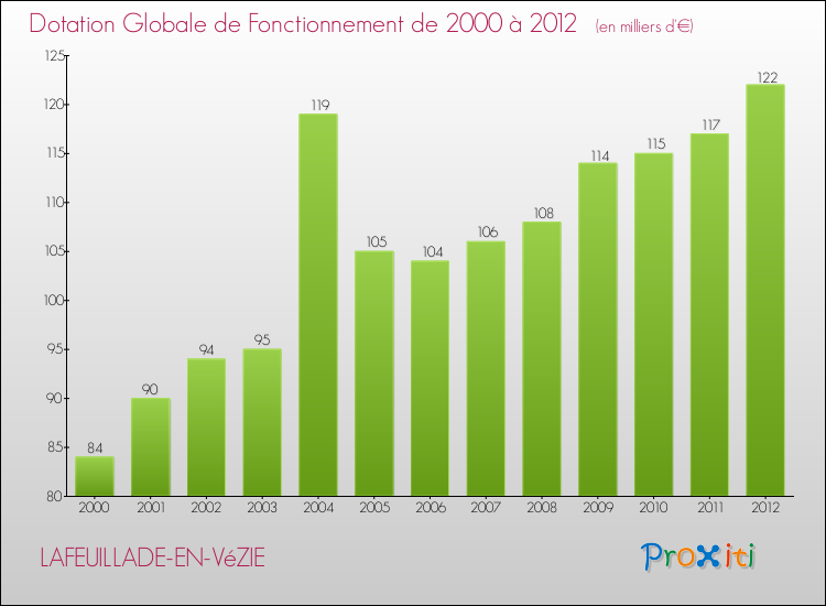 En effet, la dotation globale de fonctionnement versée par l'état en 2012 à la seule commune de Lafeuillade-en-Vézie était de : 122 000 € au total.