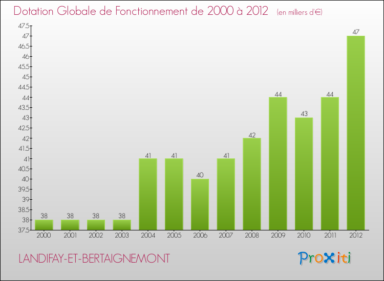En effet, la dotation globale de fonctionnement versée par l'état en 2012 à la seule commune de Landifay-et-Bertaignemont était de : 47 000 € au total.