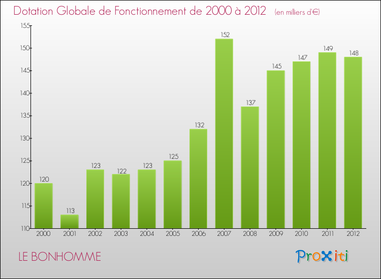 En effet, la dotation globale de fonctionnement versée par l'état en 2012 à la seule commune de Le Bonhomme était de : 148 000 € au total.