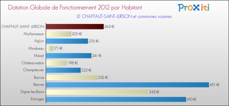 Le graphique ci dessous indique la Dotation Globale de Fonctionnement accordée par habitant à Le Chaffaut-Saint-Jurson en 2012 par rapport aux communes voisines.