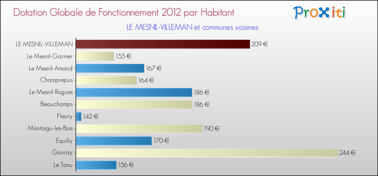 Le graphique ci dessous indique la Dotation Globale de Fonctionnement accordée par habitant à Le Mesnil-Villeman en 2012 par rapport aux communes voisines.