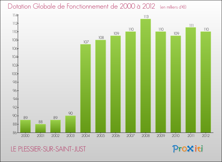 En effet, la dotation globale de fonctionnement versée par l'état en 2012 à la seule commune de Le Plessier-sur-Saint-Just était de : 110 000 € au total.