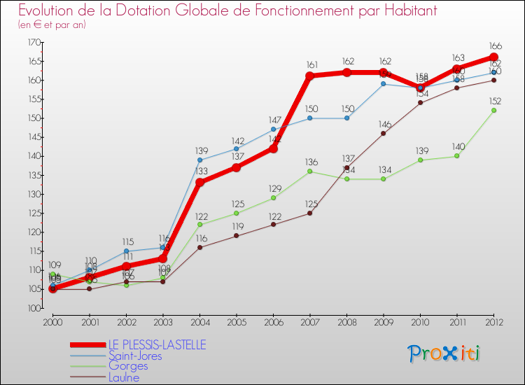 Rapporté aux 257 habitants de Le Plessis-Lastelle en 2012, cela représente 166 € par habitant.