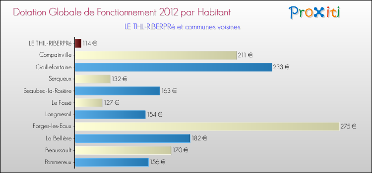 Le graphique ci dessous indique la Dotation Globale de Fonctionnement accordée par habitant à Le Thil-Riberpré en 2012 par rapport aux communes voisines.