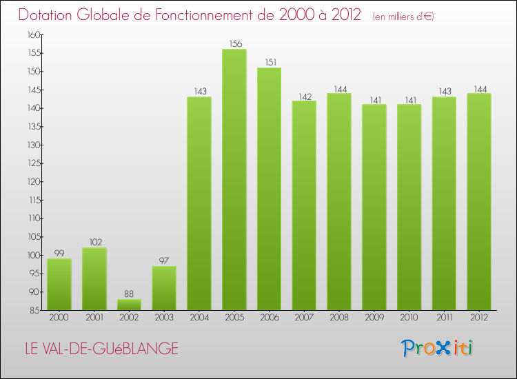 En effet, la dotation globale de fonctionnement versée par l'état en 2012 à la seule commune de Le Val-de-Guéblange était de : 144 000 € au total.