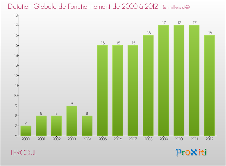En effet, la dotation globale de fonctionnement versée par l'état en 2012 à la seule commune de Lercoul était de : 16 000 € au total.