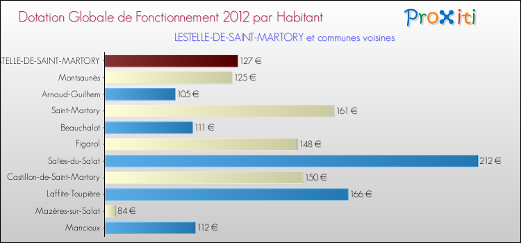 Le graphique ci dessous indique la Dotation Globale de Fonctionnement accordée par habitant à Lestelle-de-Saint-Martory en 2012 par rapport aux communes voisines.