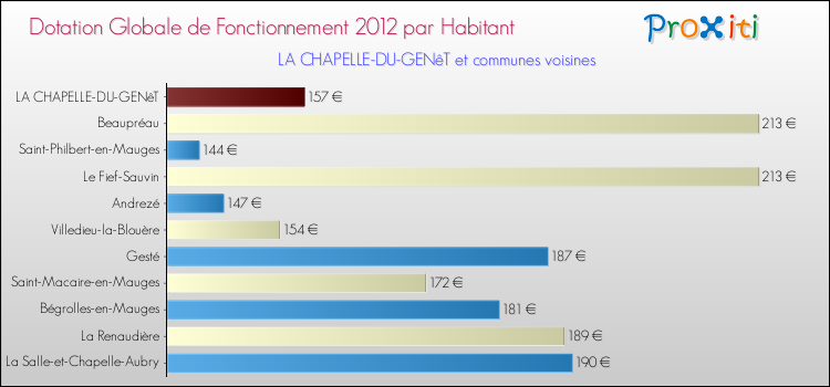 Le graphique ci dessous indique la Dotation Globale de Fonctionnement accordée par habitant à La Chapelle-du-Genêt en 2012 par rapport aux communes voisines.