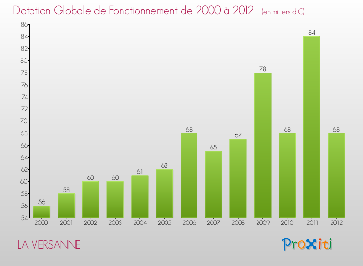 Dans le même temps, la Dotation Globale de Fonctionnement accordée aux communes françaises similaires à La Versanne était de 181 € par habitant, en 2012.