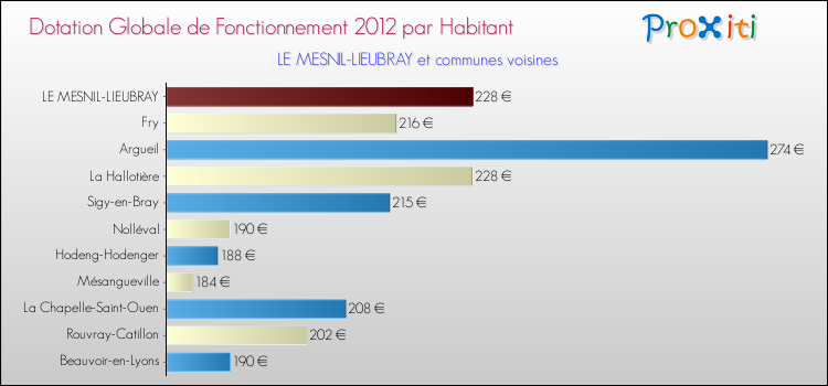 Le graphique ci dessous indique la Dotation Globale de Fonctionnement accordée par habitant à Le Mesnil-Lieubray en 2012 par rapport aux communes voisines.