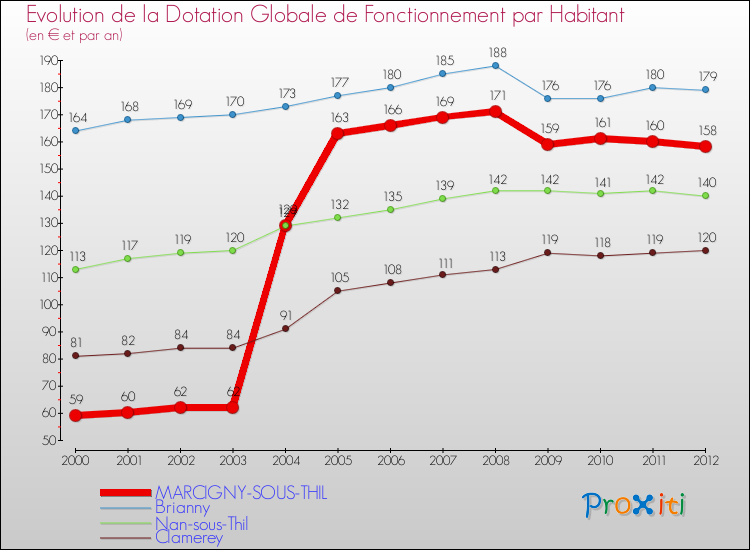 Rapporté aux 60 habitants de Marcigny-sous-Thil en 2012, cela représente 158 € par habitant.