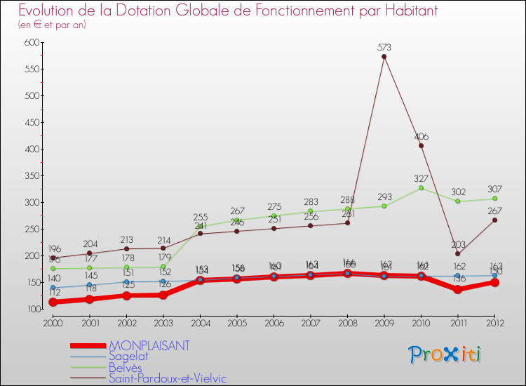 A Monplaisant, en 2012 un habitant reçoit donc moins de subventions au titre de la DGF que pour des communes similaires.