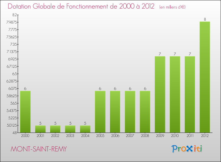 En effet, la dotation globale de fonctionnement versée par l'état en 2012 à la seule commune de Mont-Saint-Remy était de : 8 000 € au total.