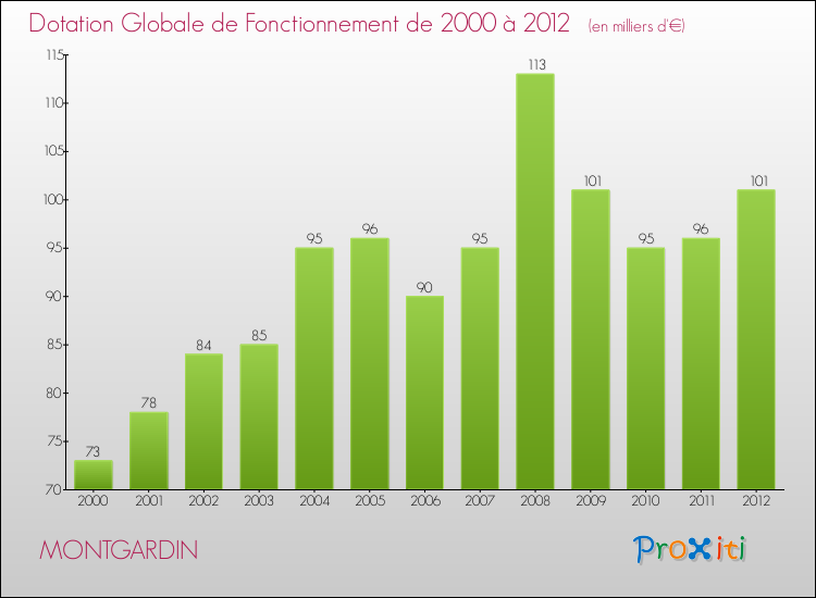 En effet, la dotation globale de fonctionnement versée par l'état en 2012 à la seule commune de Montgardin était de : 101 000 € au total.