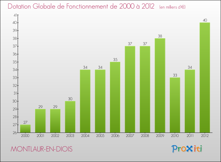 En effet, la dotation globale de fonctionnement versée par l'état en 2012 à la seule commune de Montlaur-en-Diois était de : 40 000 € au total.