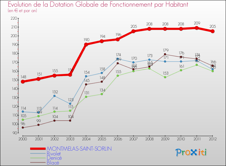 Rapporté aux 368 habitants de Montmelas-Saint-Sorlin en 2012, cela représente 205 € par habitant.