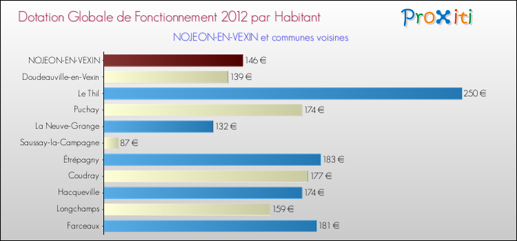Le graphique ci dessous indique la Dotation Globale de Fonctionnement accordée par habitant à Nojeon-en-Vexin en 2012 par rapport aux communes voisines.